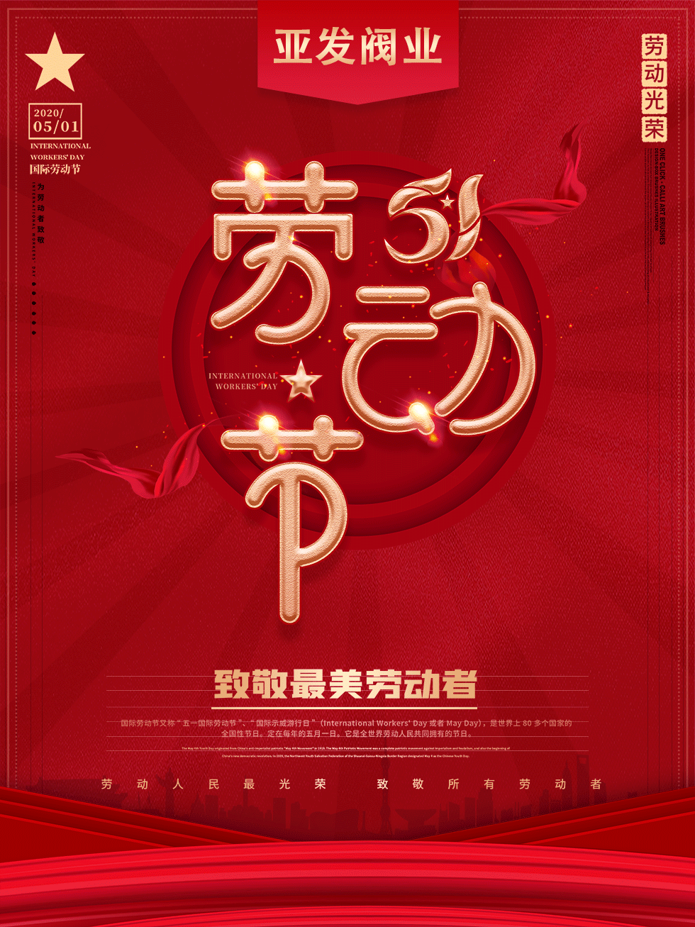 一年一度的五一小長假將至,在這里浙江亞發閥業有限公司全體員工向您及您的家人送出最真摯的祝福,提前祝大家勞動節快樂!